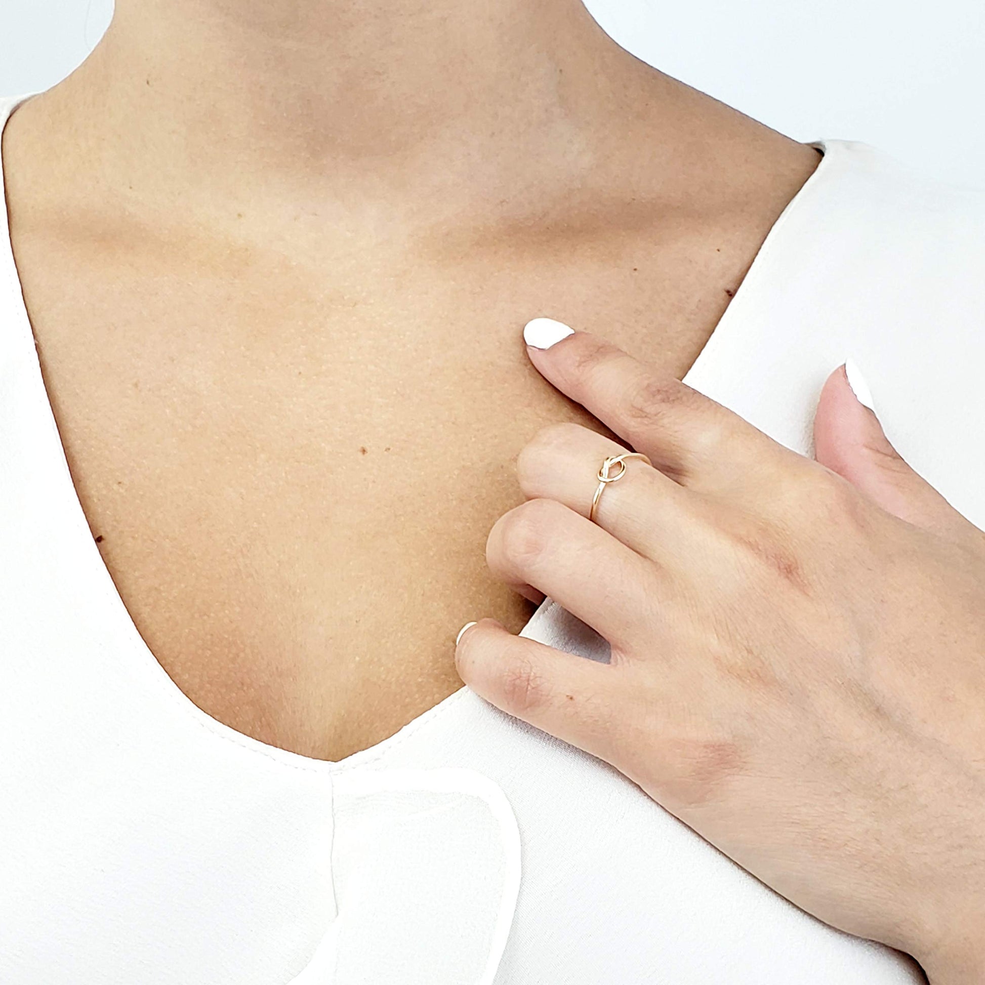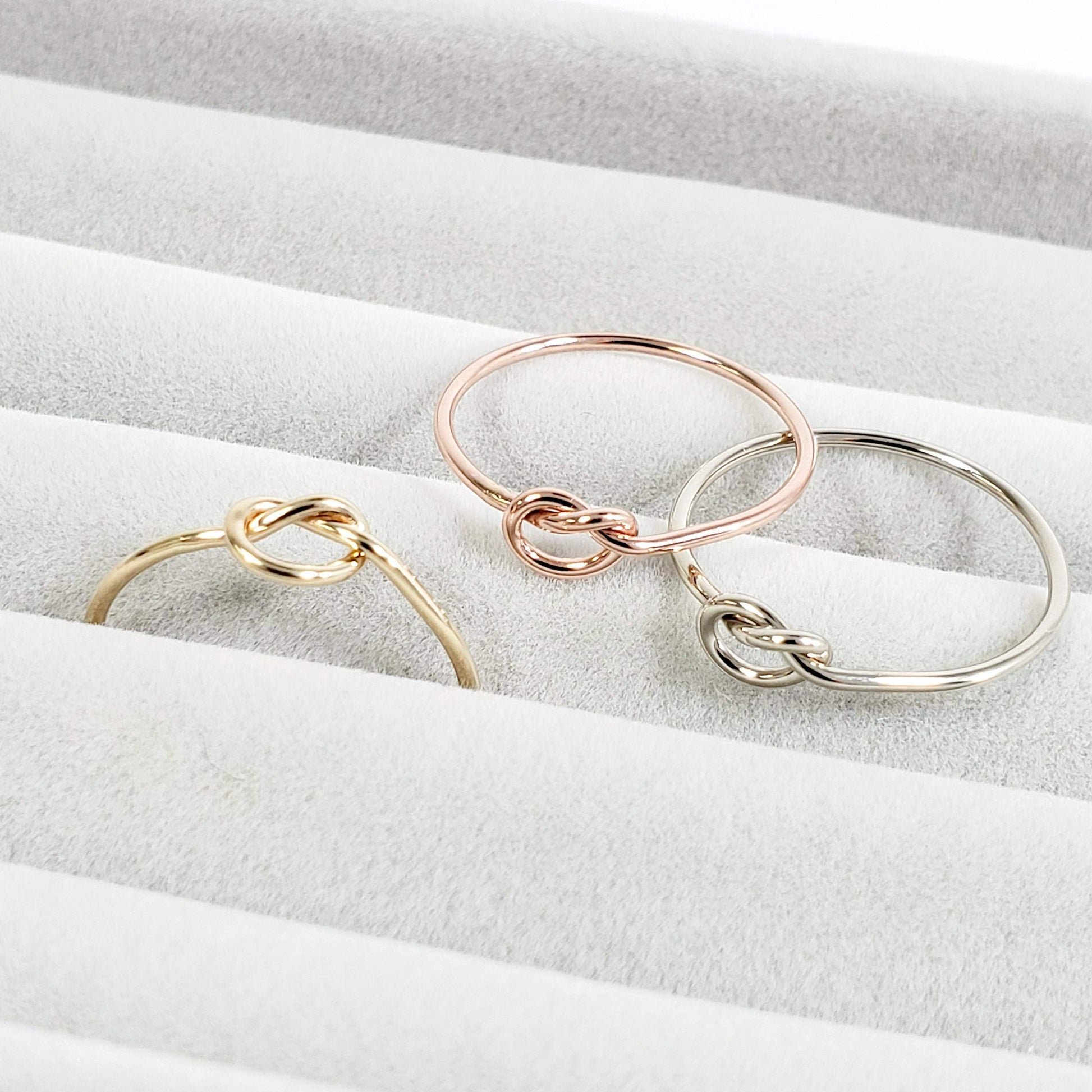 Details: The stacking knot ring is fashioned with sleek real 14k Solid Gold. It's a symbol of love to share with those closest to you or to wear yourself and add to your personalized stacking rings collection. This delicate design features a single knot, perfect for you or your loved ones. Each color is beautifully hand crafted with 18 gauge solid gold wire.