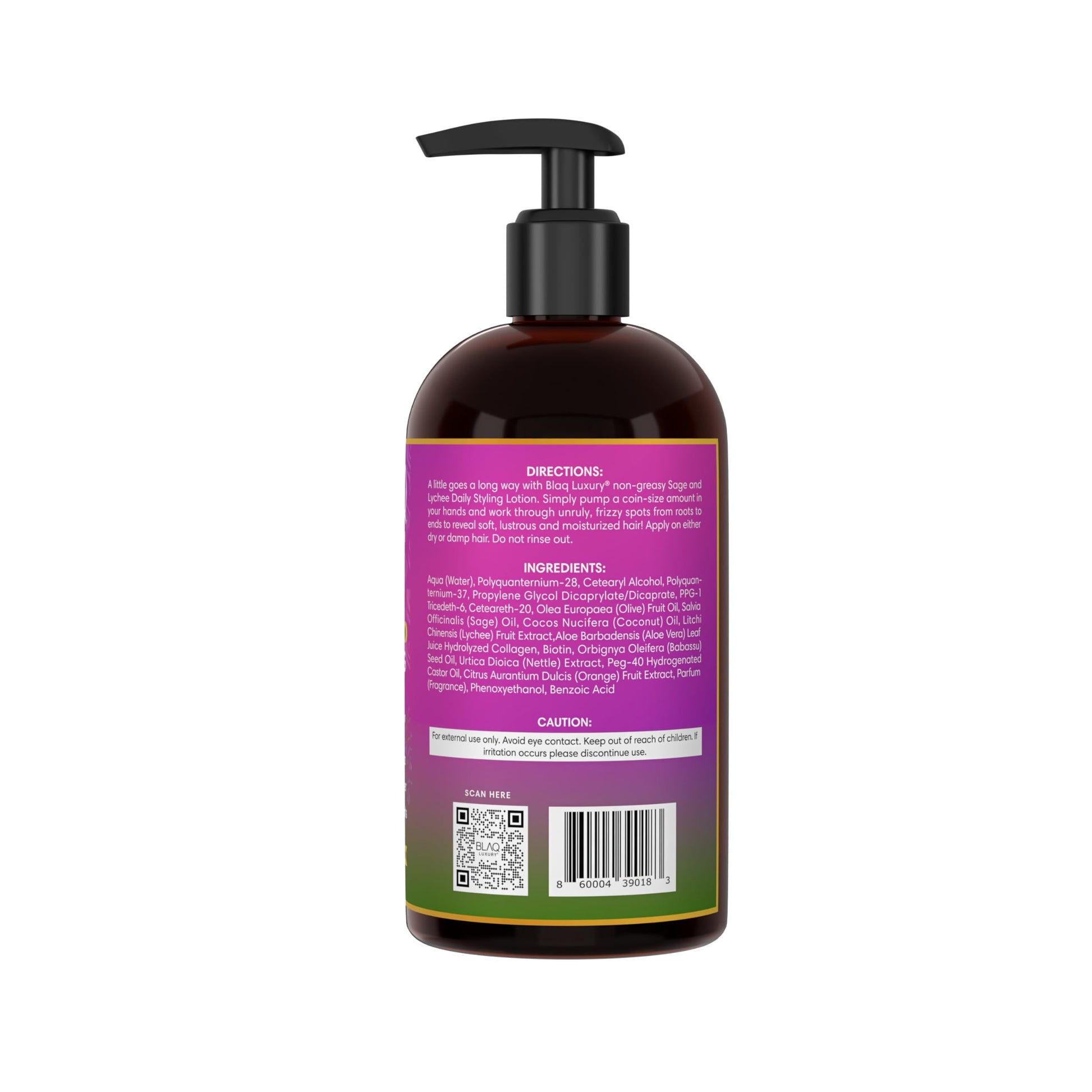 Blaq Luxury Sage & Lychee Daily Styling Lotion - Formula for Easy Styling and Frizz Control - Infused with Biotin and Natural Botanicals - Promotes Hair Repair, Growth, and Manageability - 12oz