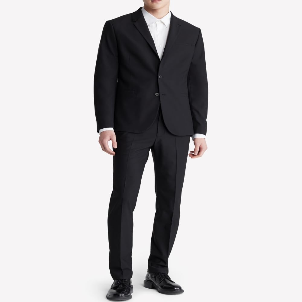 Details: Designed with a tailored slim fit, this Calvin Klein suit jacket features a refined and timeless look. Crafted from a sleek stretch blend in a modern silhouette. Pairs with the matching Refined Stretch Slim Fit Pants or stands out elegantly on its own.