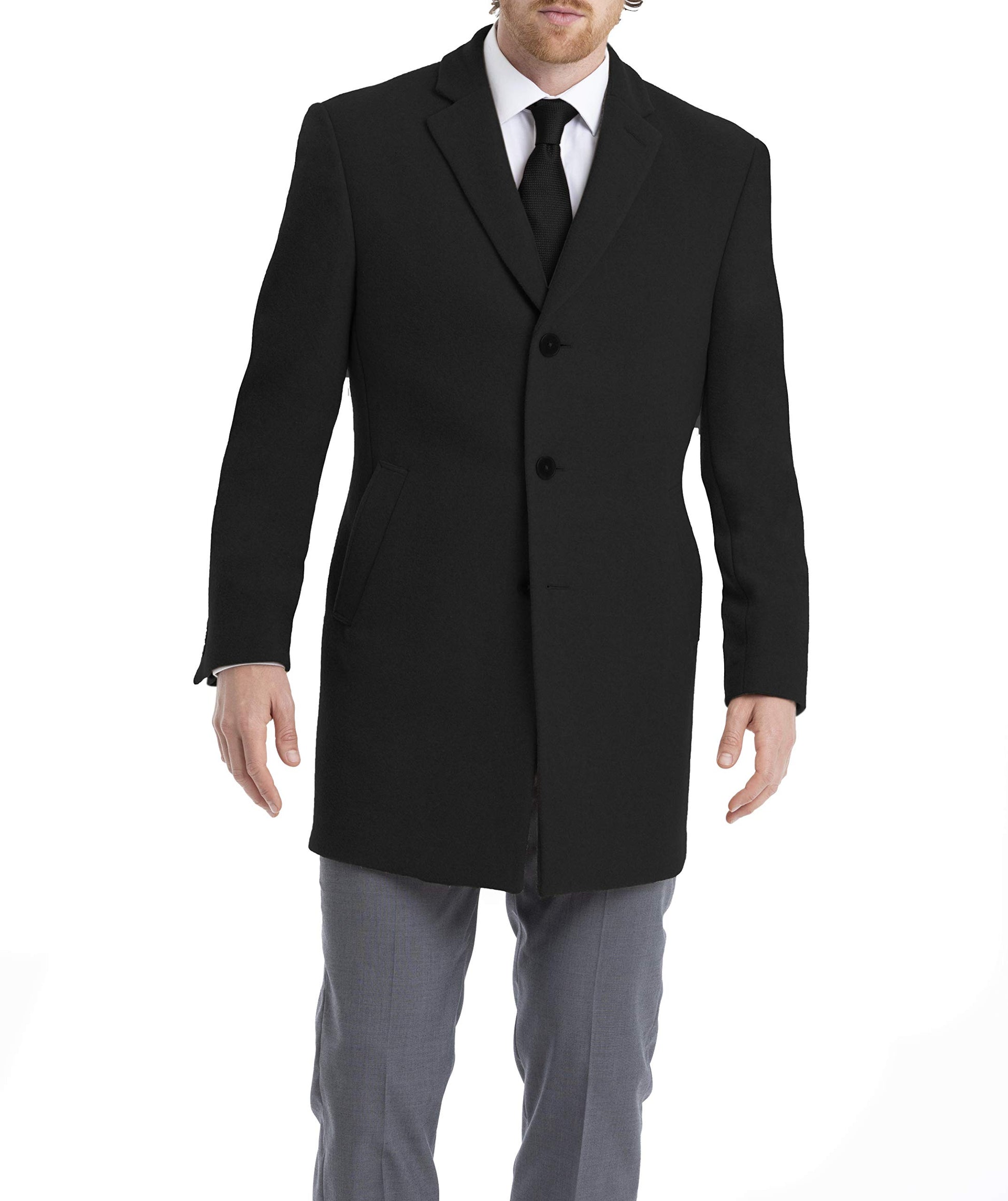 Calvin Klein Men's Slim Fit Wool Blend Overcoat Jacket, Black Solid, 40 Short