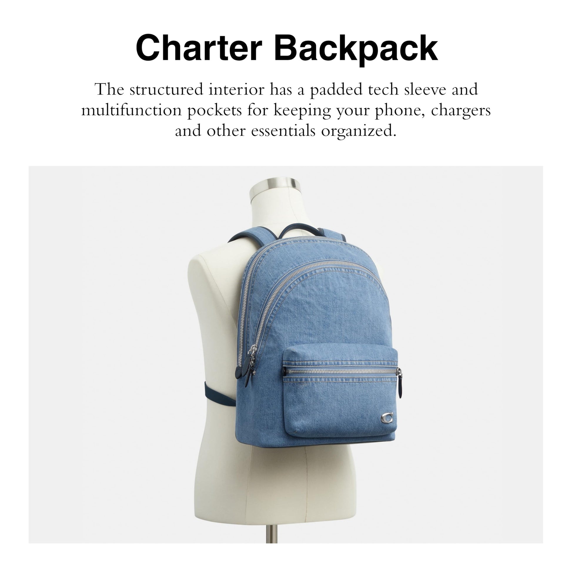 - Organized Essentials: The Charter designer backpack is an old-school silhouette with a structured interior, padded tech sleeve and multifunction pockets for keeping your phone, chargers and other essentials organized
