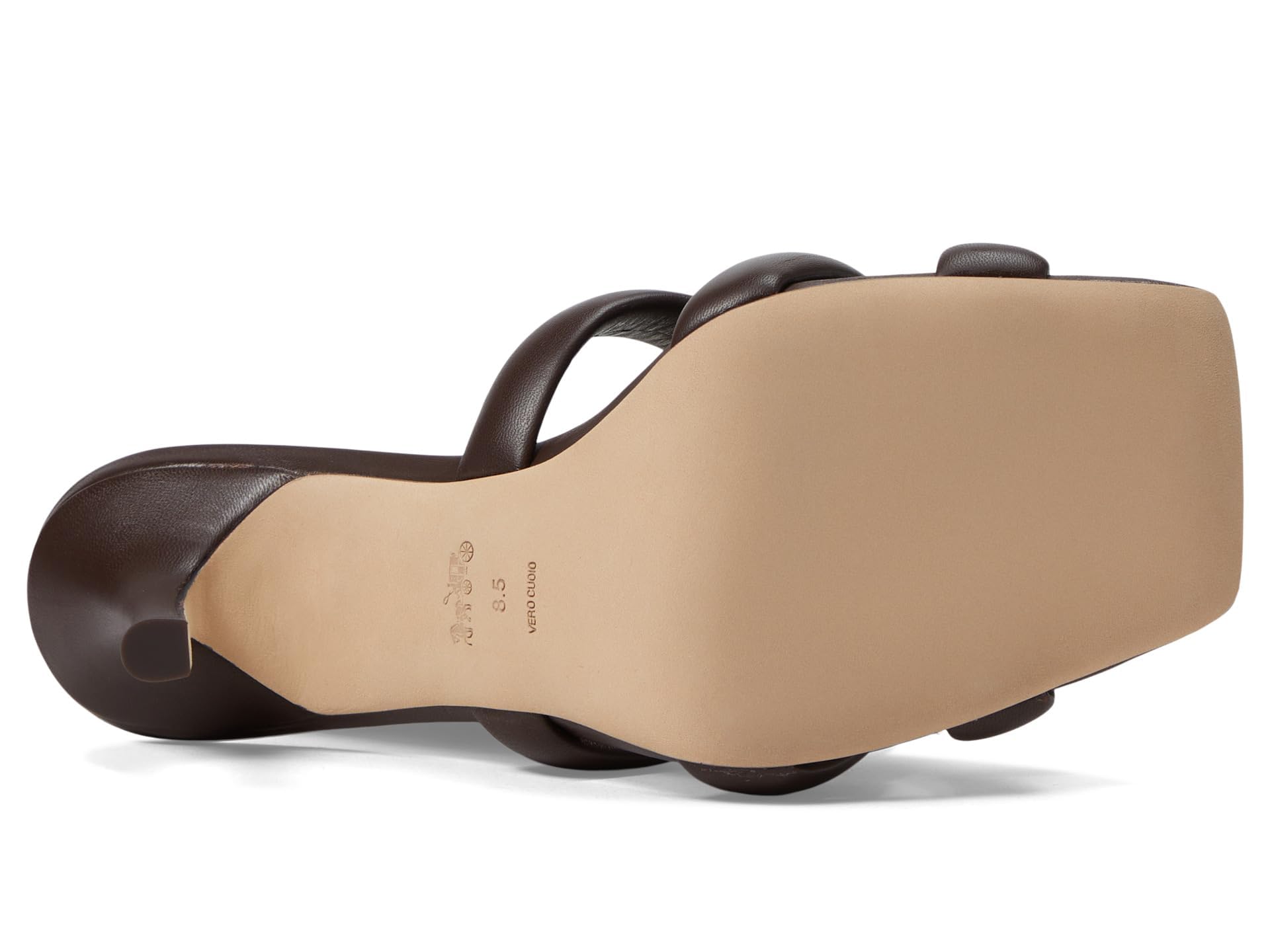 - Plush, Pillowy Leather: This high heel sandal features a square toe & a pillowy leather upper