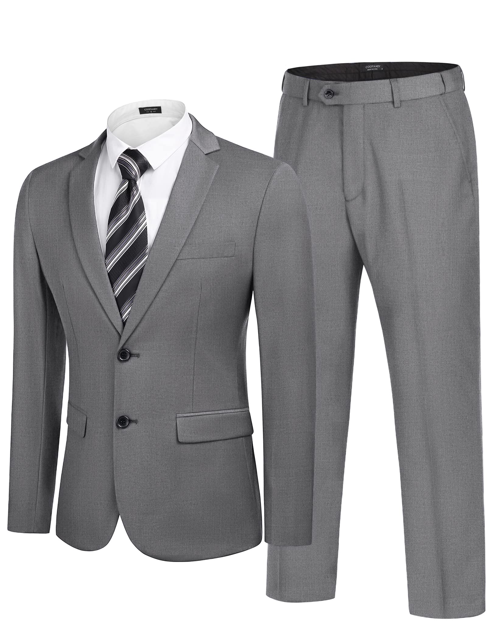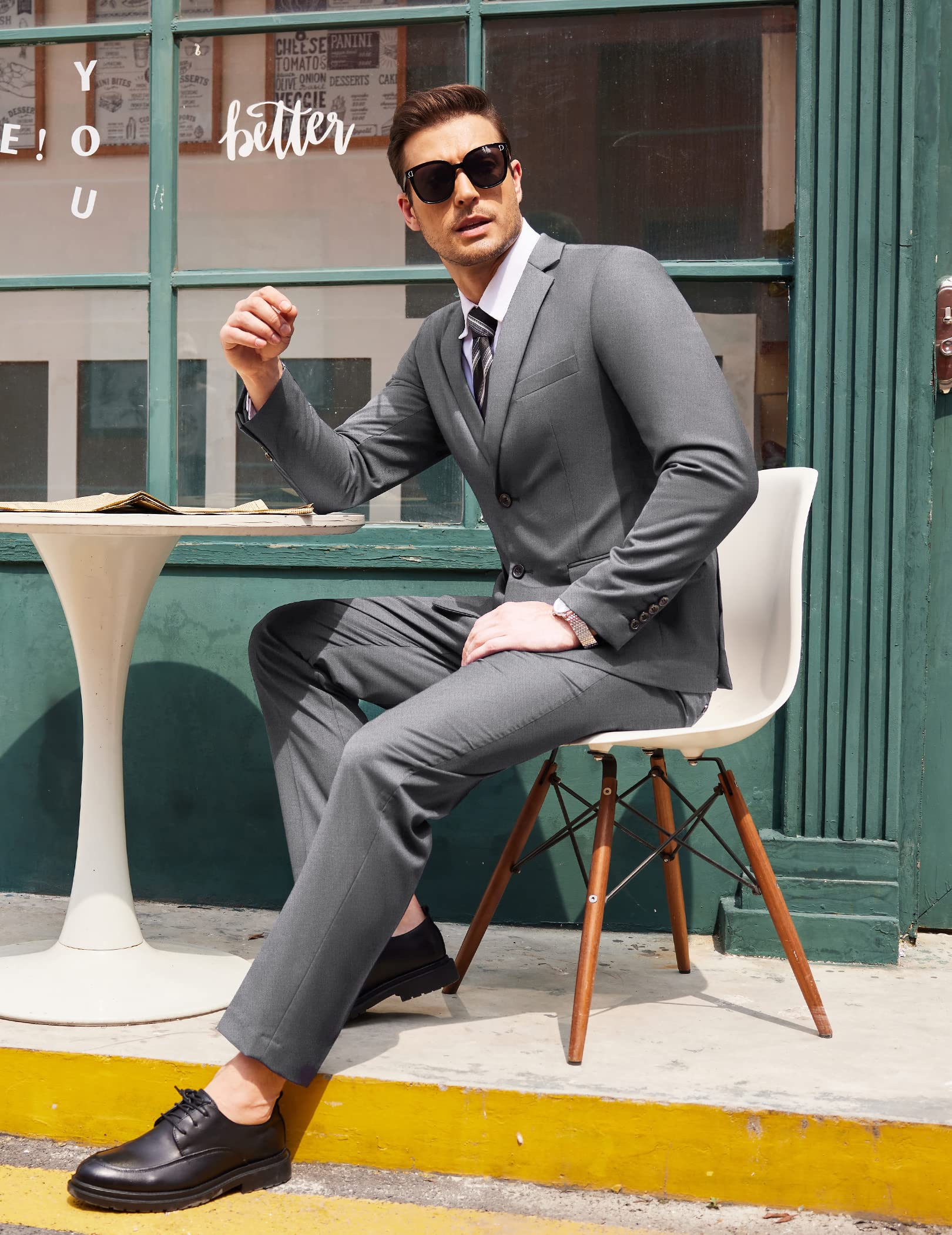 COOFANDY Men's 2 Piece Suits Slim Fit 2 Button Dress Suits Tuxedo Jacket Blazer Suit for Wedding Dinner Prom Grey