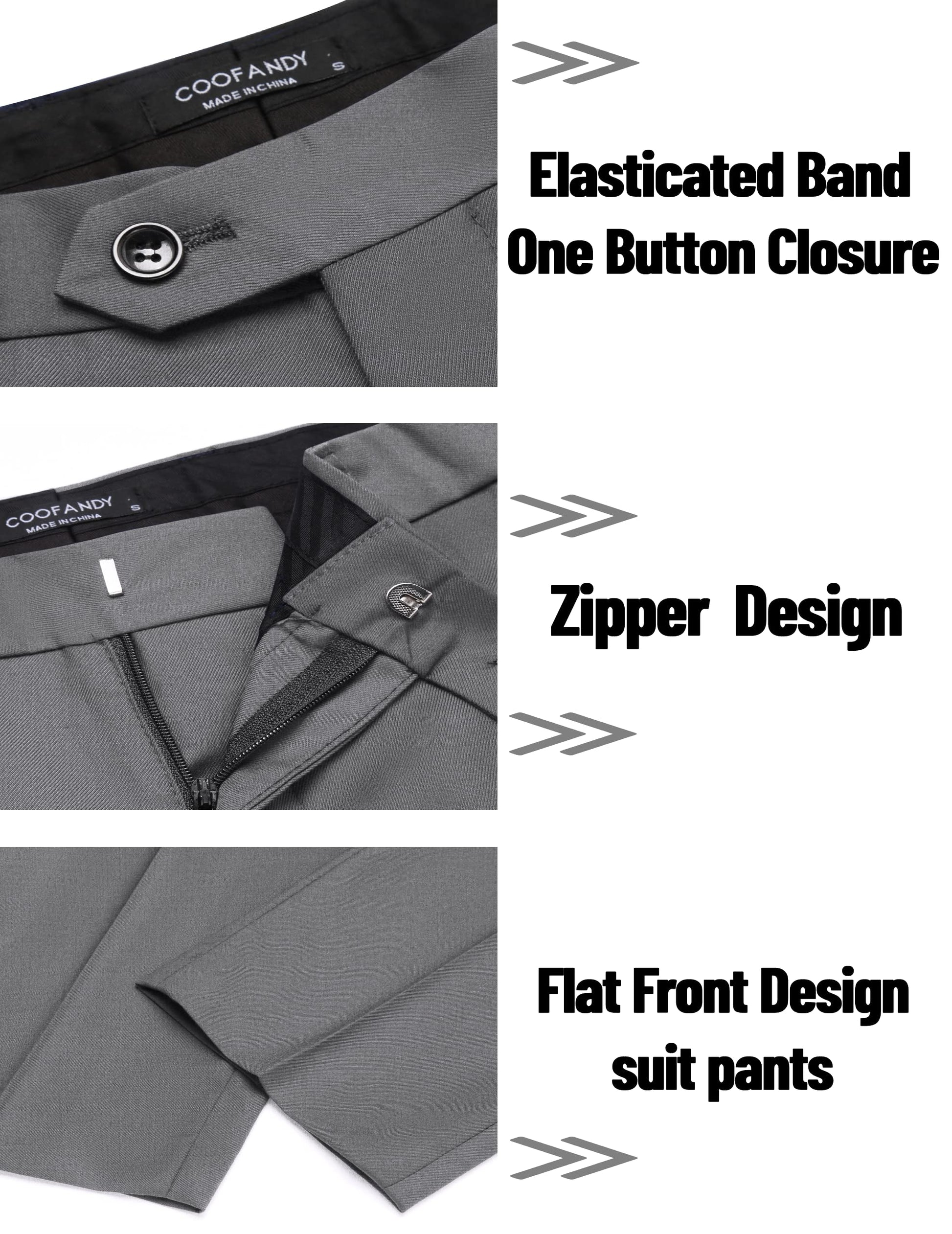 - 【2 PIECE SUITS】- 2 button tuxedo regular fit, lapel tuxedo, 2 front flap pockets and 2 inner pockets, four button cuffs with one chest pocket, dual side vent, naturally shaped and soft shoulder pads. Flat front design suit pants with Elasticated Bands, zipper design,classic suit for men.
