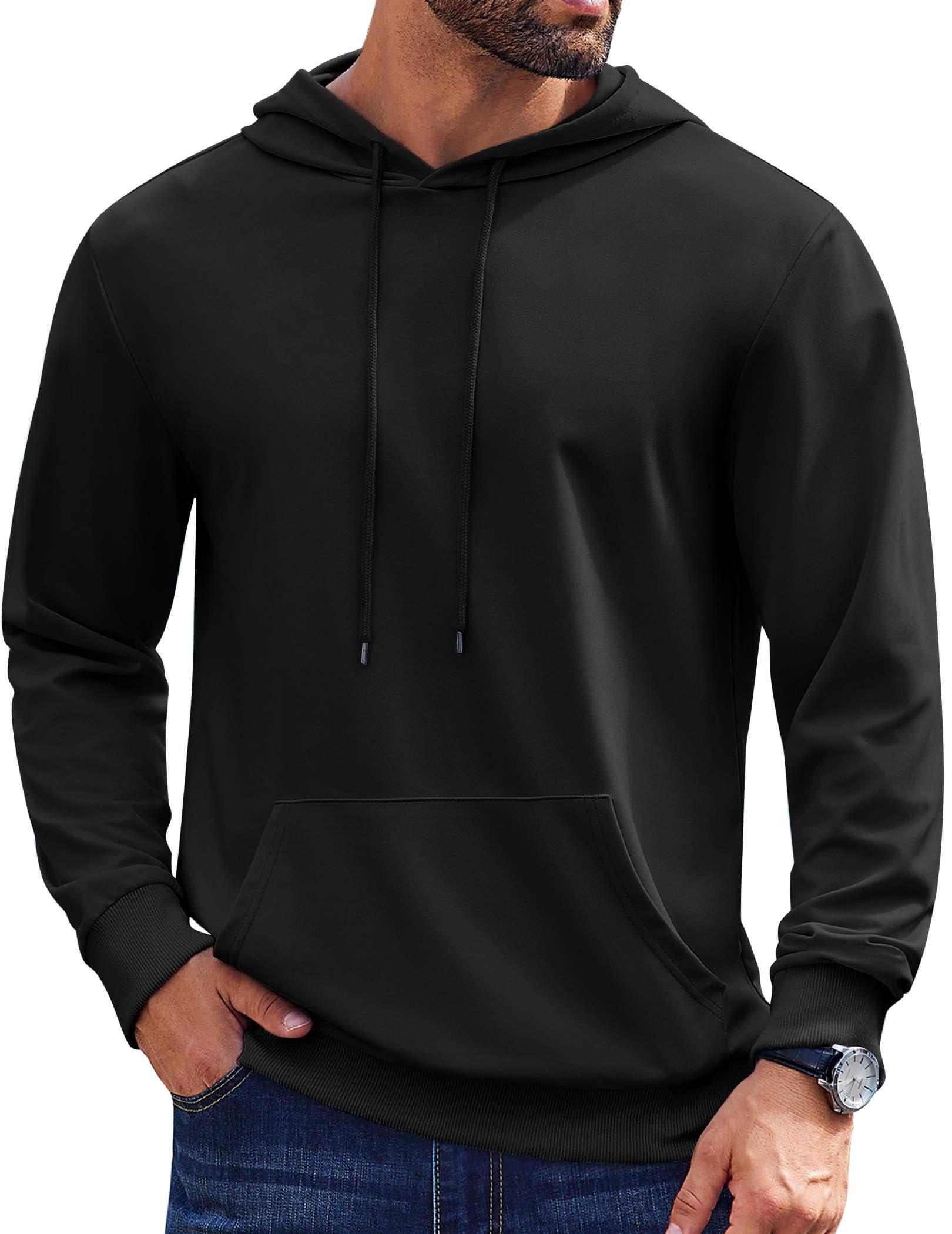 COOFANDY Mens Long Sleeve Sweatshirt Long Sleeve Knit Drawstring Hoodies for Men with Kanga Pocket Black Large