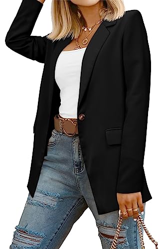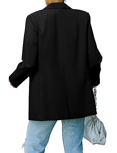 CRAZY GRID Women Business Casual Blazer Work Professional Office Blazer Jacket Ladies Buttons Long Sleeve Fashion Suit Jacket L Black