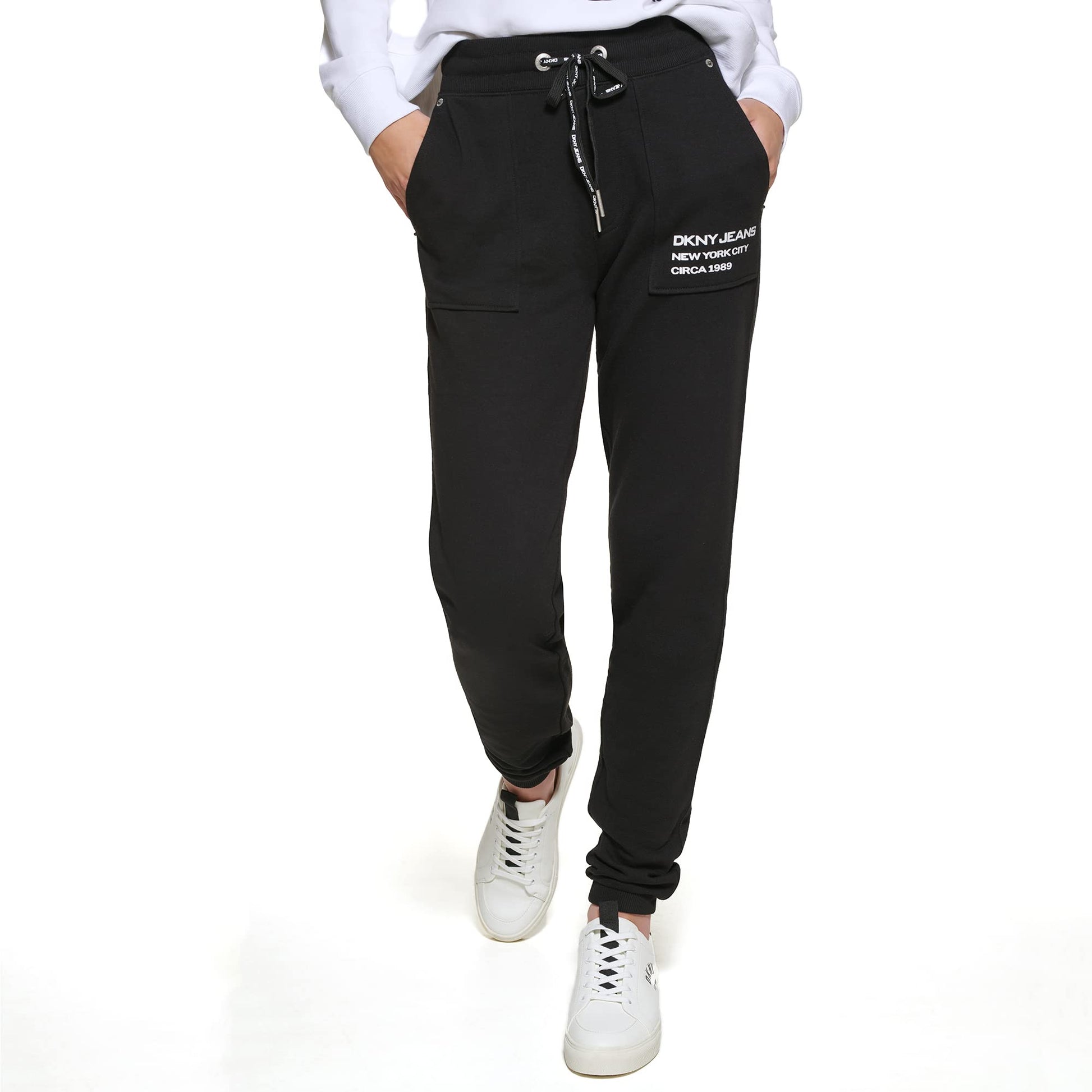DKNY womens Dkny Jeans Women's Casual Mid Rise Logo Joggers Sweatpants, Black, Medium US
