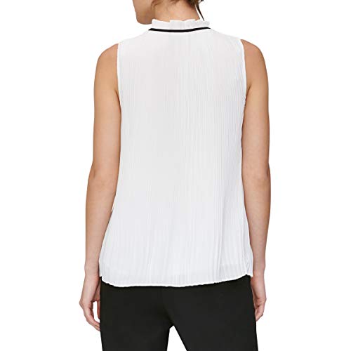 DKNY Women's Sleeveless Neck Tie Blouse, White/Black, M