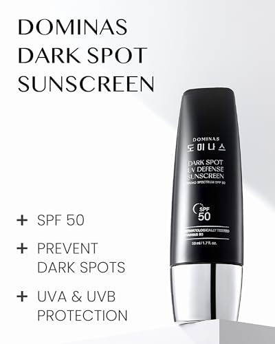 - DOMINAS DARK SPOT UV DEFENSE SUNSCREEN (50ml/1.7fl oz) - Our sunscreen offers a powerful 2-in-1 solution, providing robust broad-spectrum SPF 50 protection to shield your skin from pigmentation and dark spots. It delivers maximum UVB and UVA coverage, effectively managing freckles and giving you peace of mind with every application.