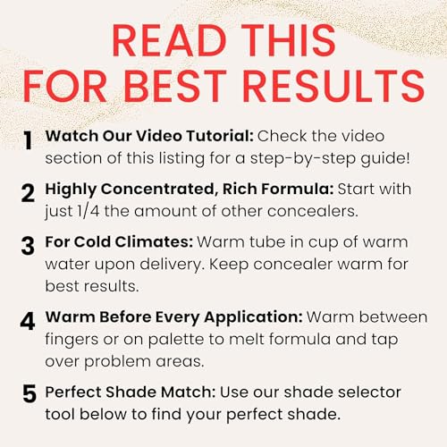- Read This For Best Results: Use just 1/4 the amount of typical concealers; warm on fingers/palette until it melts for flawless application; find your perfect shade with our shade selector tool below; for cold climates to keep product warm before use; and check our video section for a detailed tutorial.