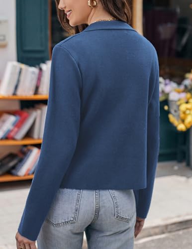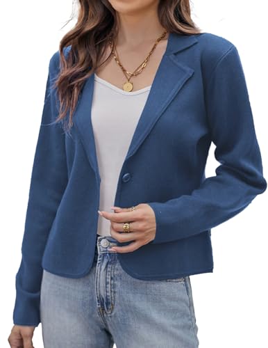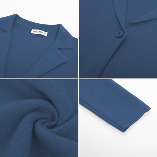 GRACE KARIN Women Sweater Blazer Button Slim Fit Business Casual Knit Crop Blazer Jacket Blue L