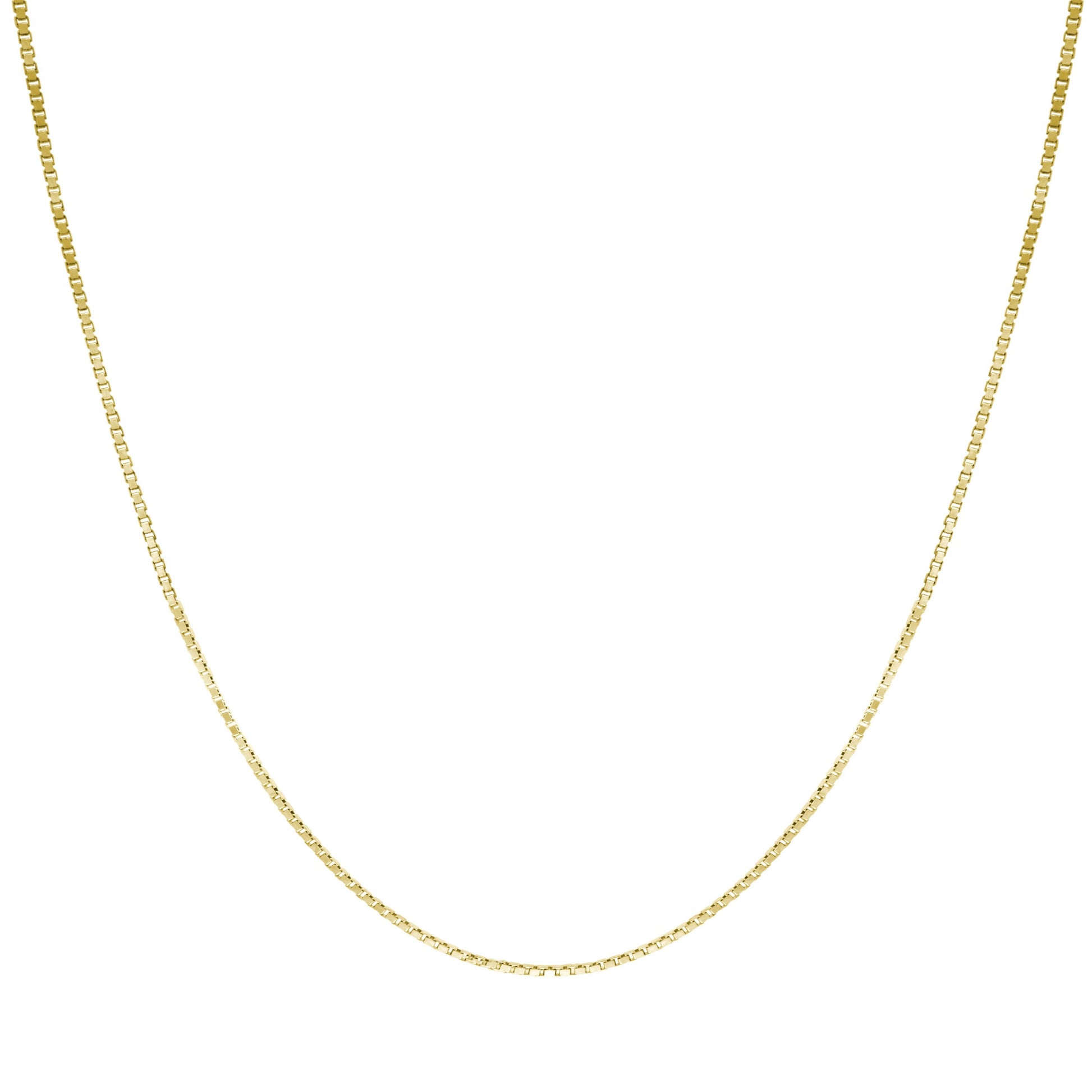 14K solid gold 0.7mm box chain. Comes in different sizes with a lobster clasp. Gift box included.