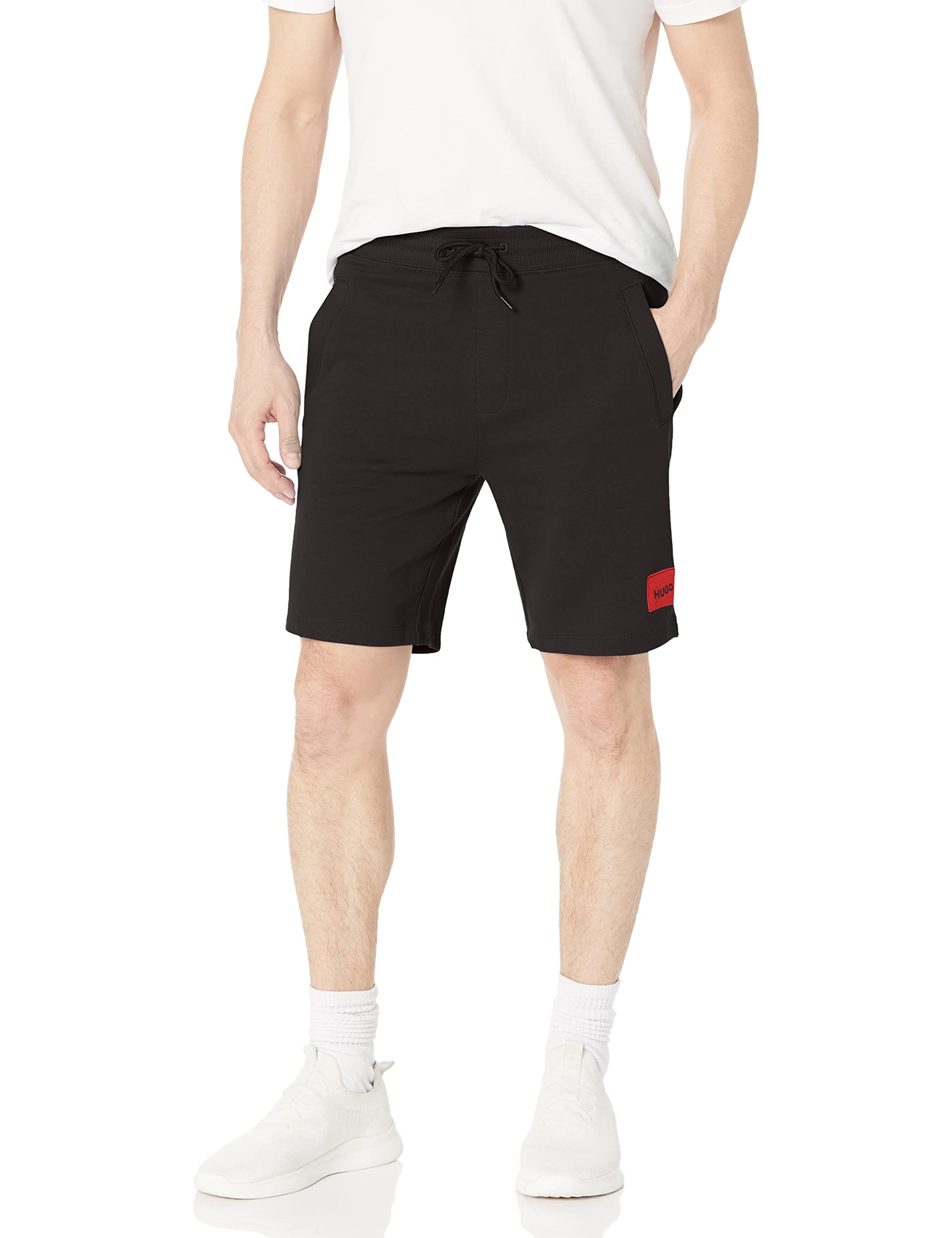 HUGO Boss Mens Big Square Logo Jersey Shorts Sweatpants, Black, Small US