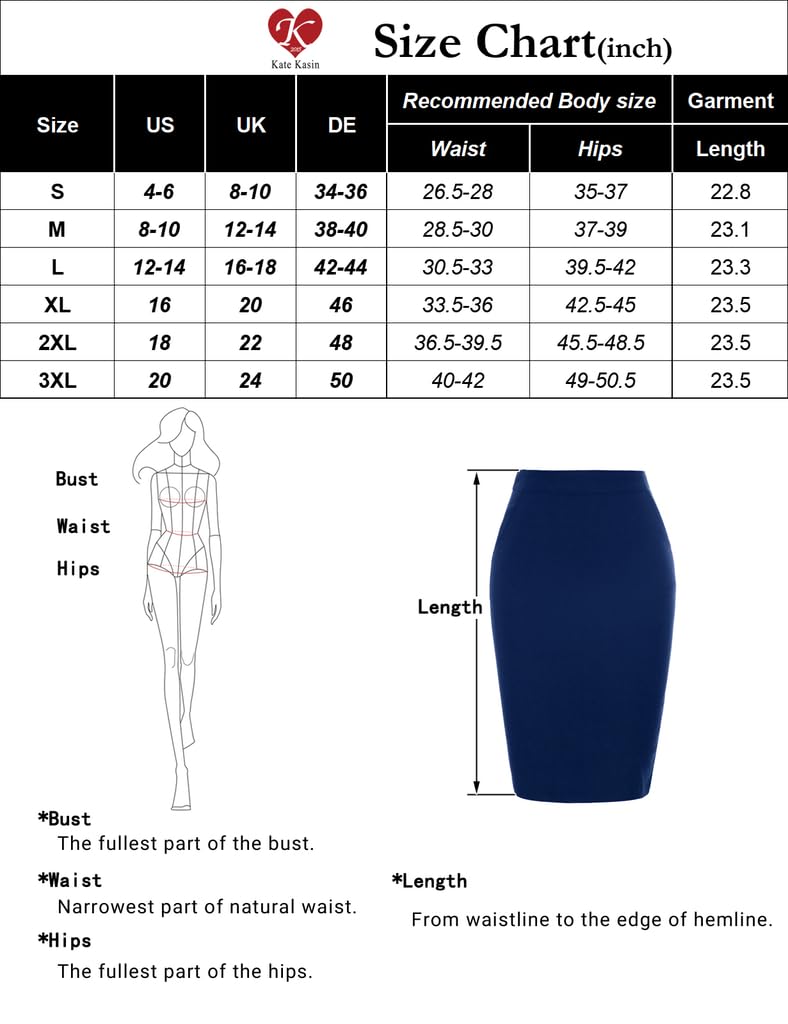 - Knee length bodycon pencil skirt, accentuate your slim figure in the skirt. Perfect midi skirt for business wear to work and casual daily wear.suitable for all season of year.