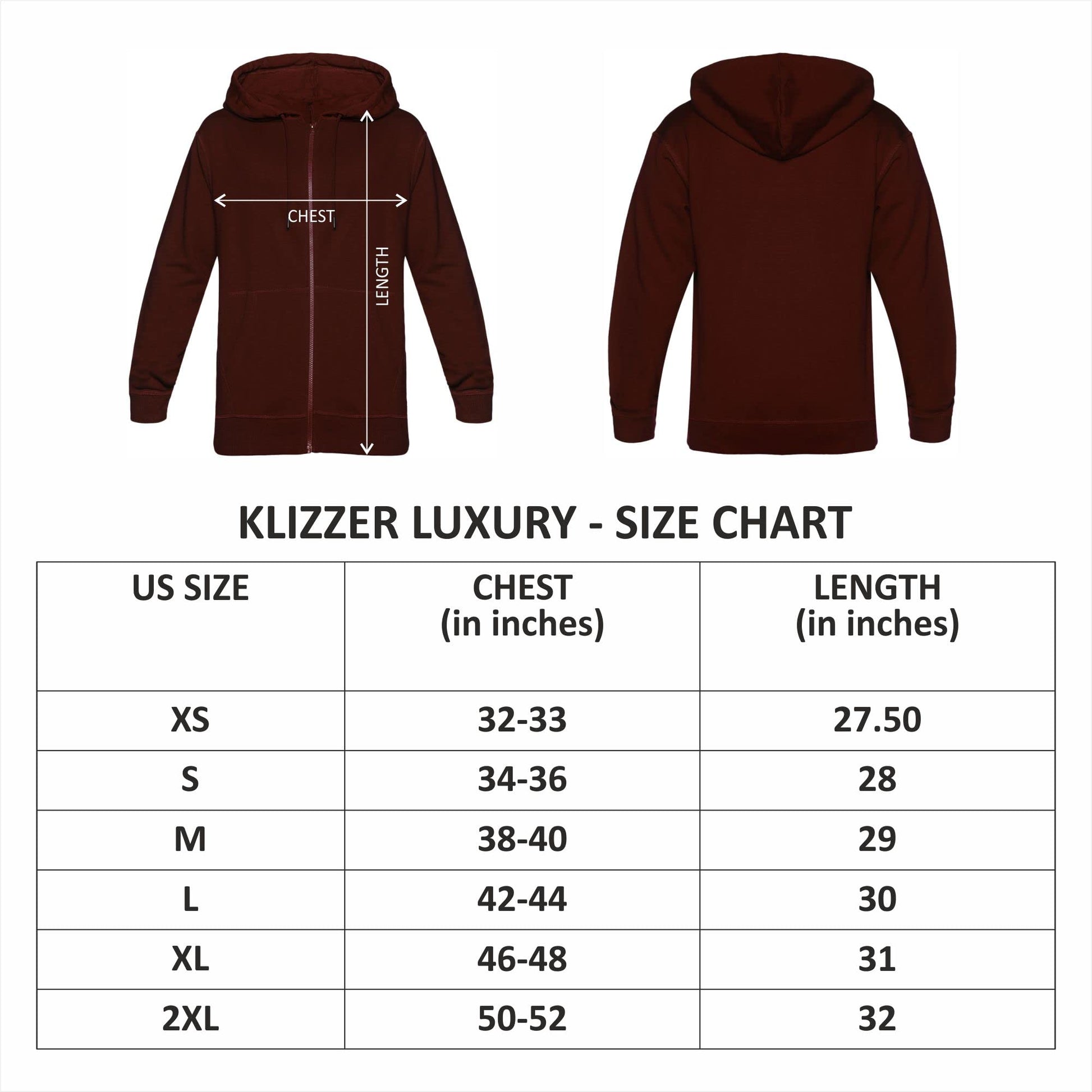 - Regular Fit : These cool luxury full-zip hoodies are designed & built with proven fit to keep you comfy & warm on chilly days.Fits true to size. The model in the image is wearing a Medium size , please refer american standard size chart in photo for reference.
