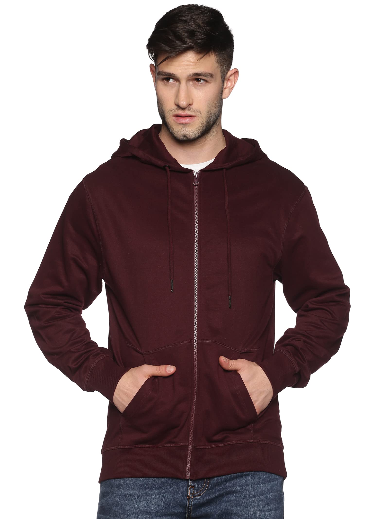 Klizzer Luxury Mens Zip Up Hoodie of Cotton Fleece Heavyweight sweatshirt hoodie(Maroon, Large)