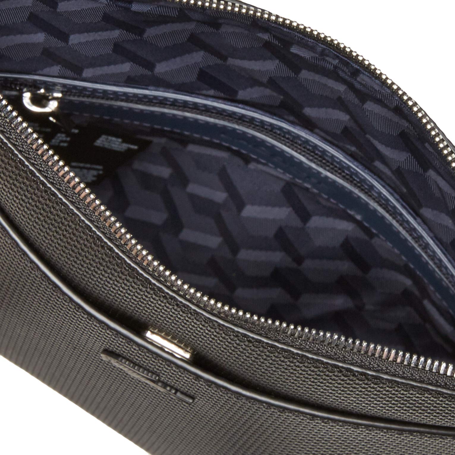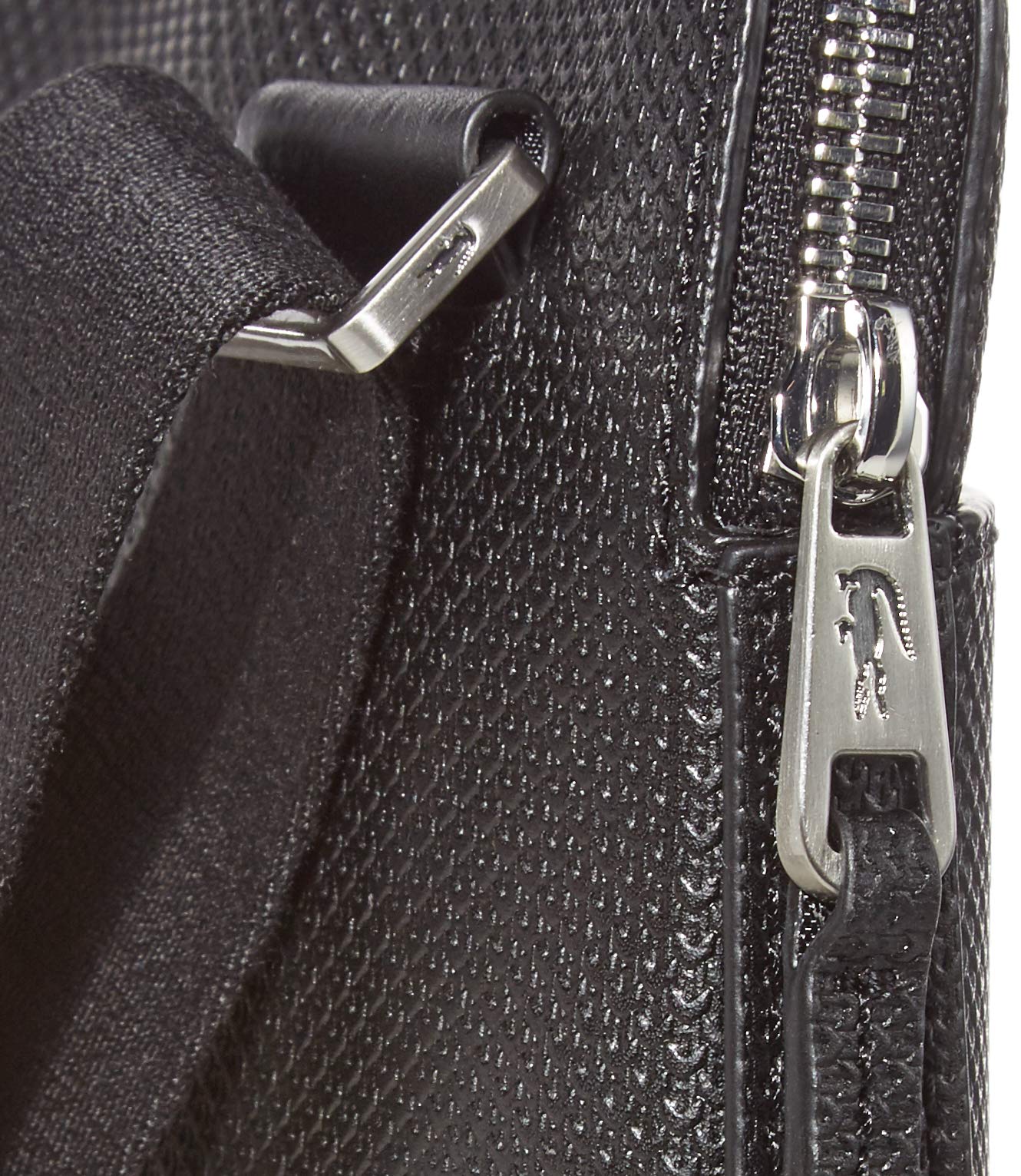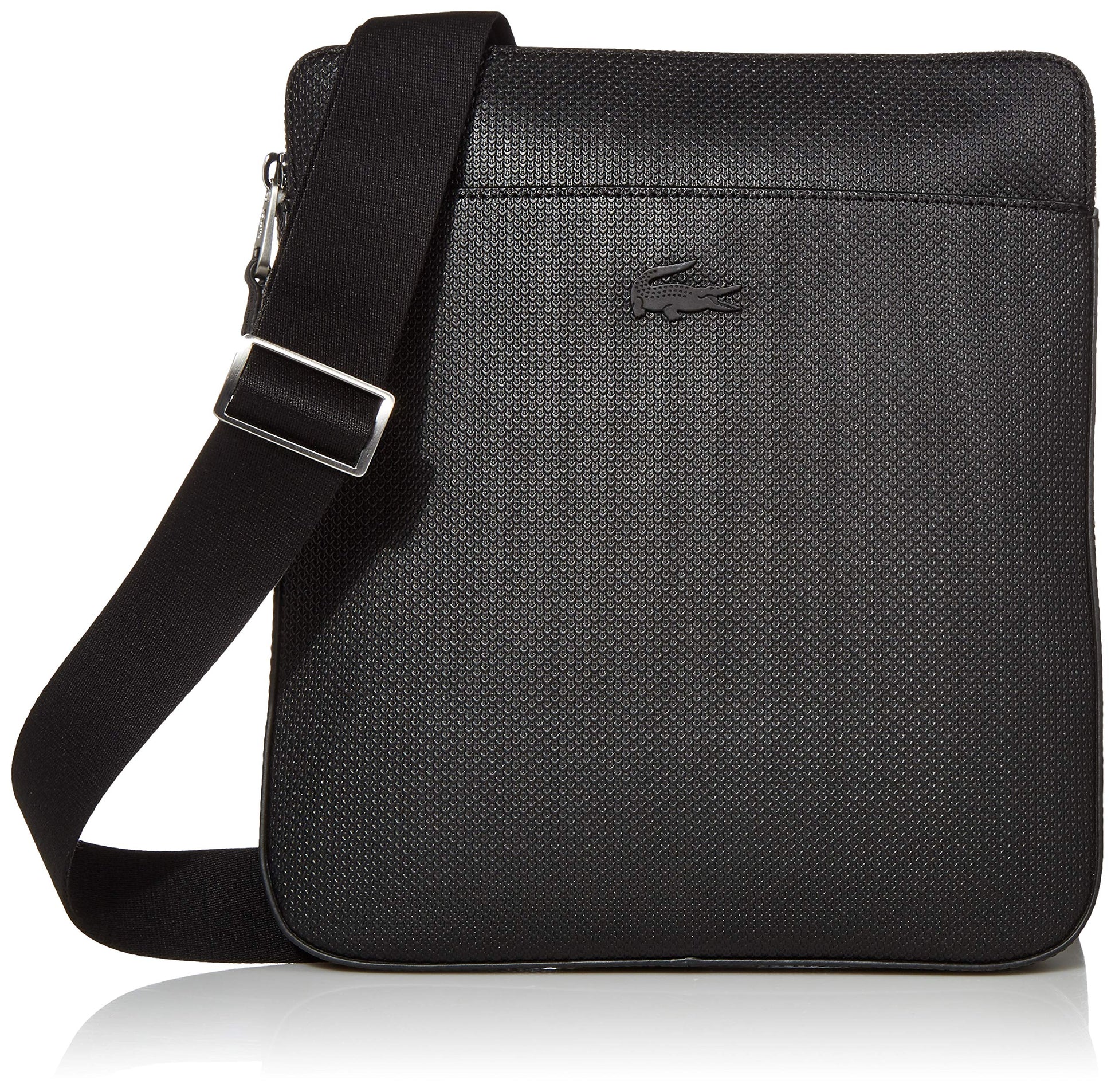 Lacoste Mens Chantaco Matte Piqu Leather Flat Zip Bag, Black, One Size