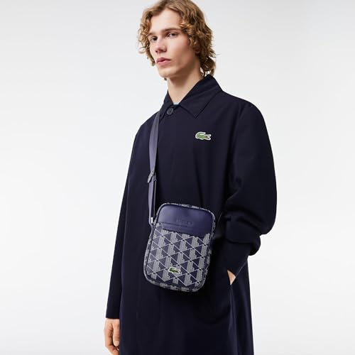 Lacoste Men's Vertical Camera Bag, Silver Chine/White-Navy Blue-Sunny, One
