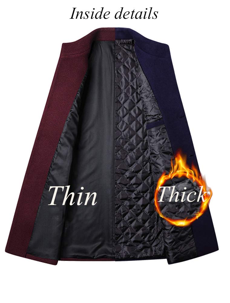 Minibee Men's Trench Woolen Coat Winter Stylish Long Slim Fit Luxury Wool Blend Topcoat Business Down Jacket L