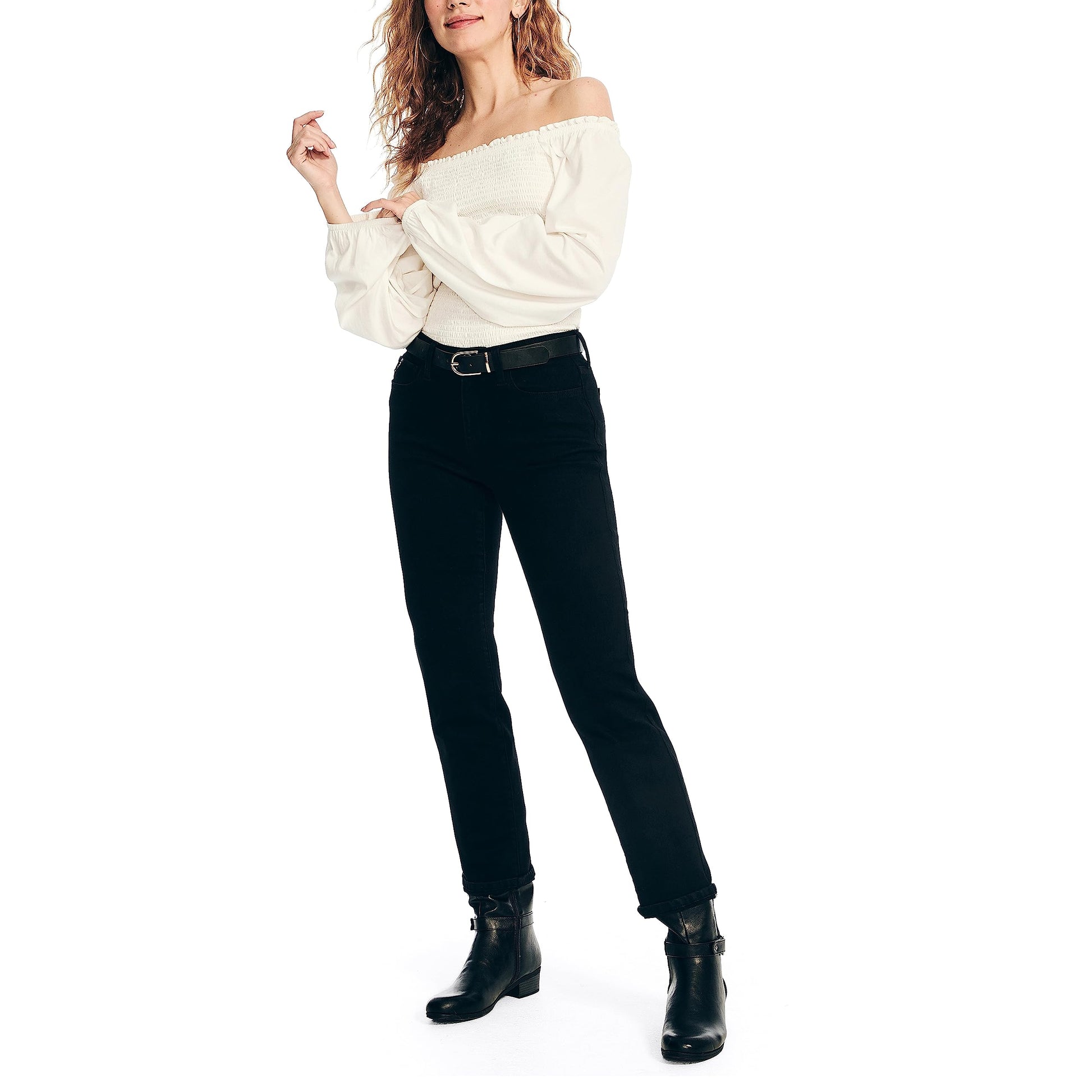 Nautica Women's Jeans Co. Sustainably Crafted Mid-Rise Straight Denim, True Black