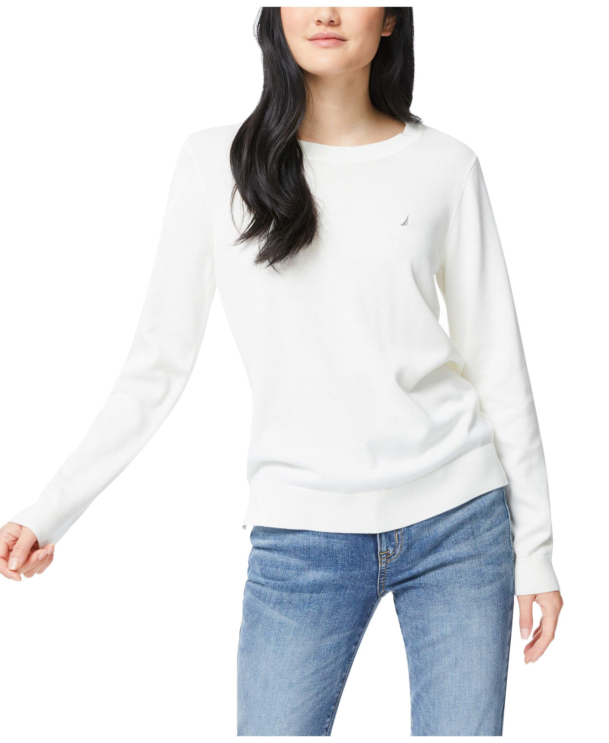 Nautica Women's Super Soft Crew Neck Sweater, Marshmallow, Medium