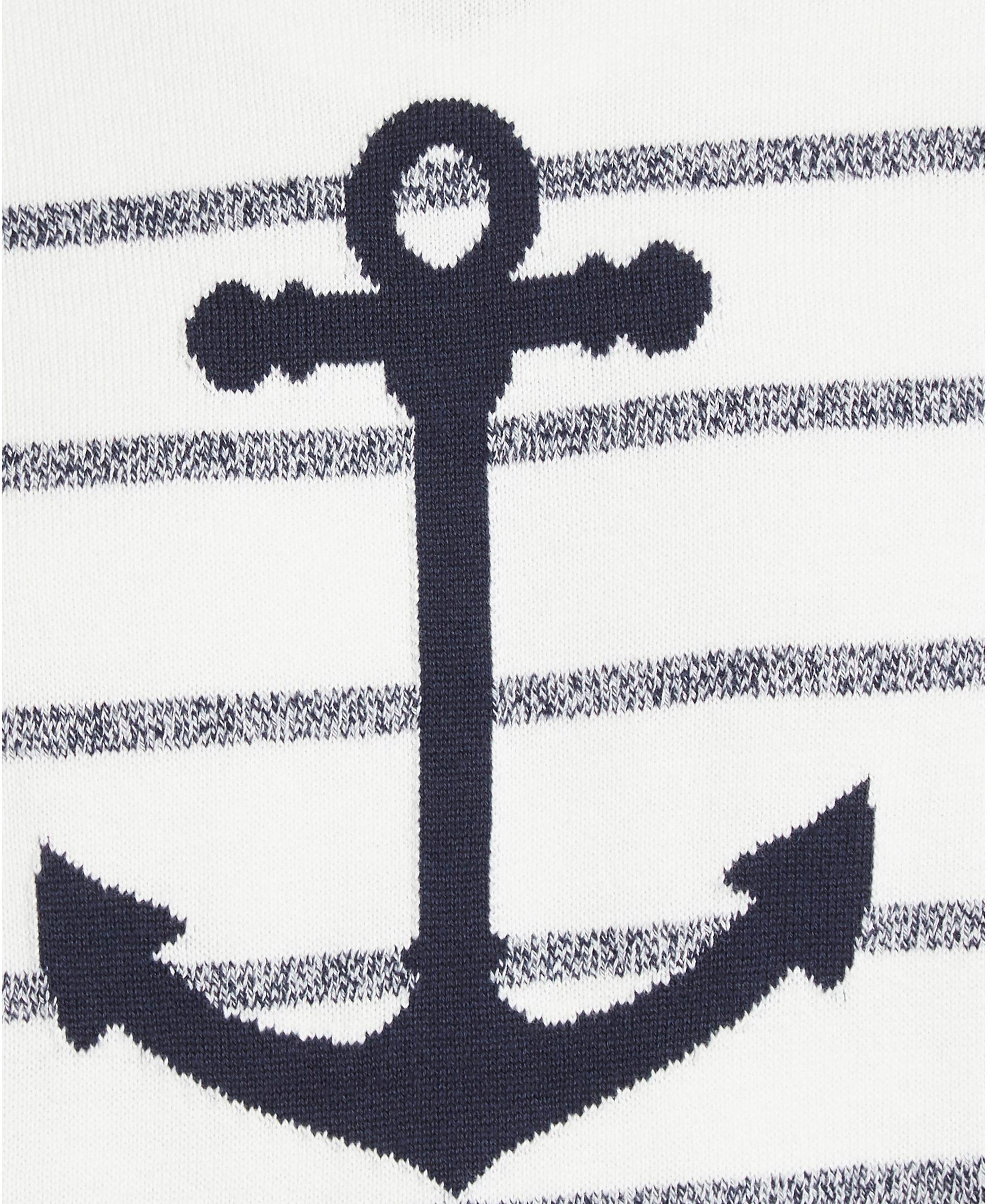 This supersoft, lightweight sweater features a ship's anchor design knit among Breton stripes for a timeless nautical touch that looks great layered or on its own.