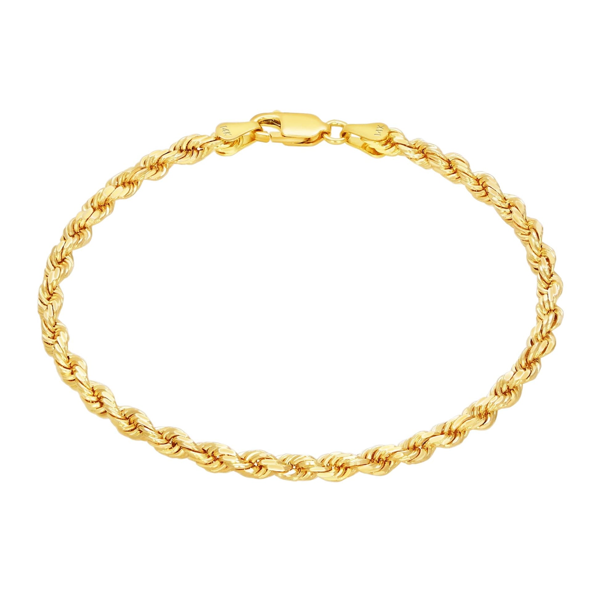 Nuragold 14k Yellow Gold 3mm Rope Chain Diamond Cut Bracelet or Anklet, Mens Womens Jewelry 7" 7.5" 8" 8.5" 9"
