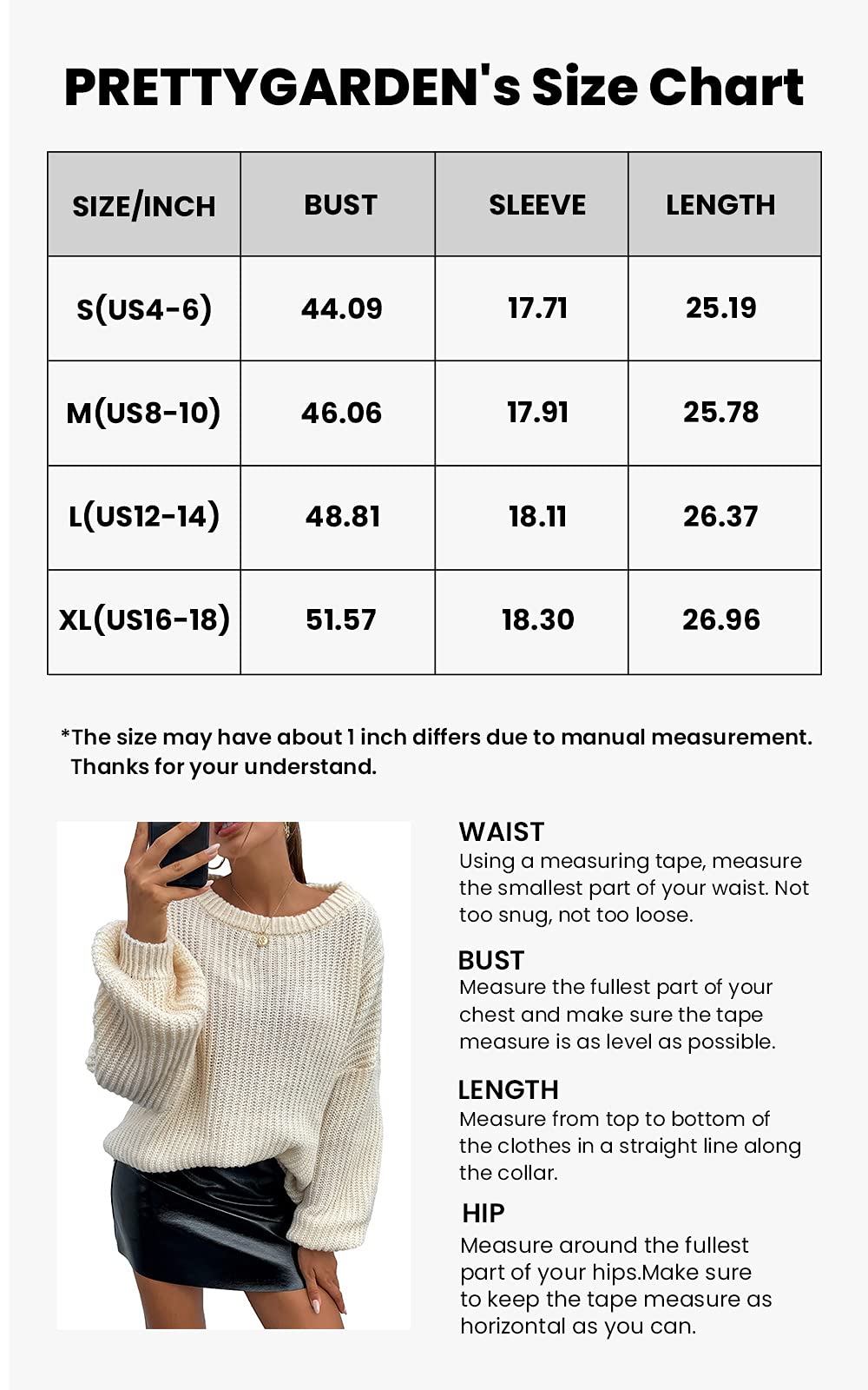 Details: Pretty Garden Womens Fashion Sweater Long Sleeve Casual Ribbed Knit Winter Pullover Sweaters Blouse Top