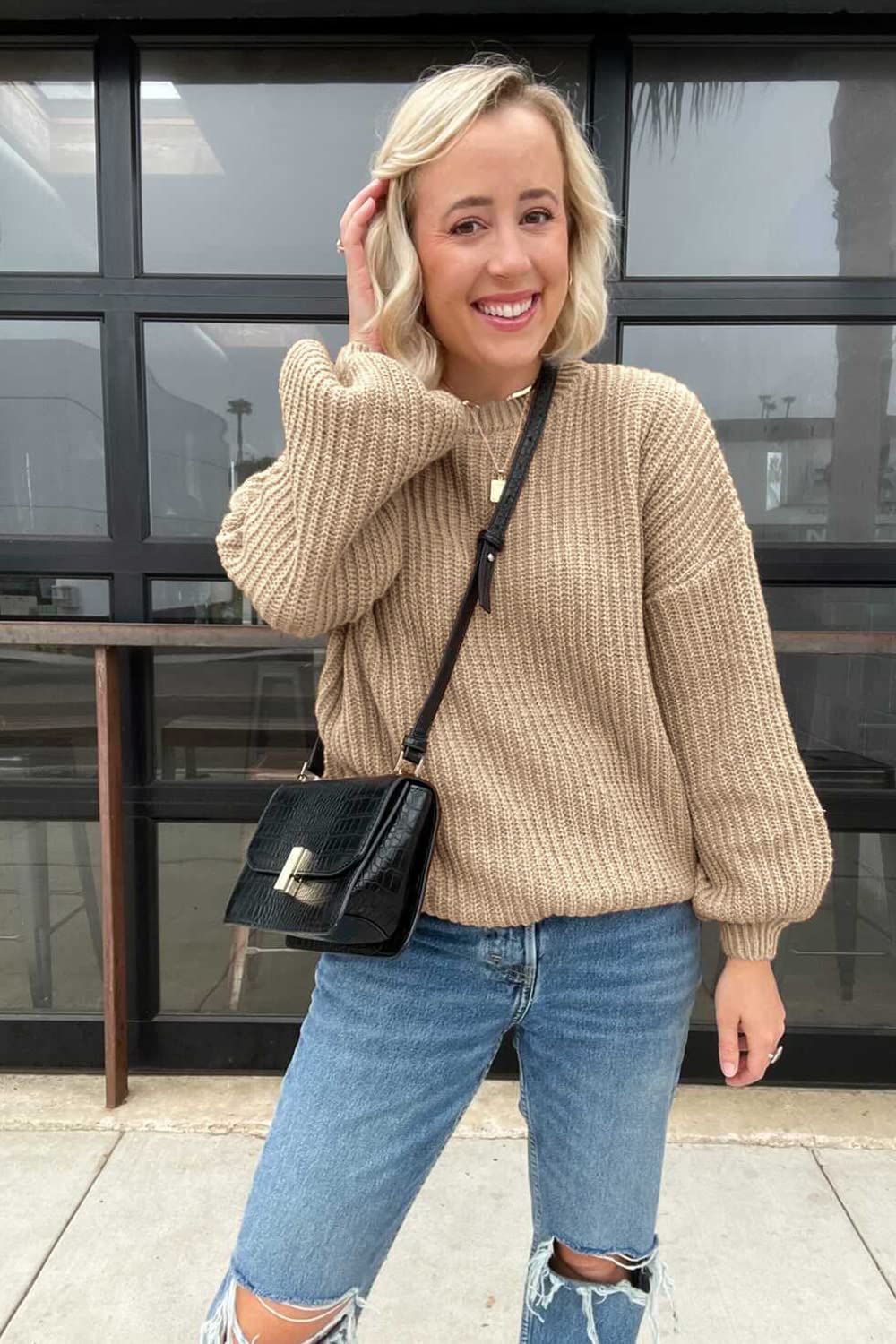 - The Style Everyone Should Have! This Casual Knit Sweater Has Unique Lantern Sleeve, Which Adds Some Cuteness. Solid Color Winter Sweater Features Drop Shoulder And Loose Fitting Design, Giving People Relaxed And Casual Feeling. It’s A Perfect Match With A Short Leather Skirt