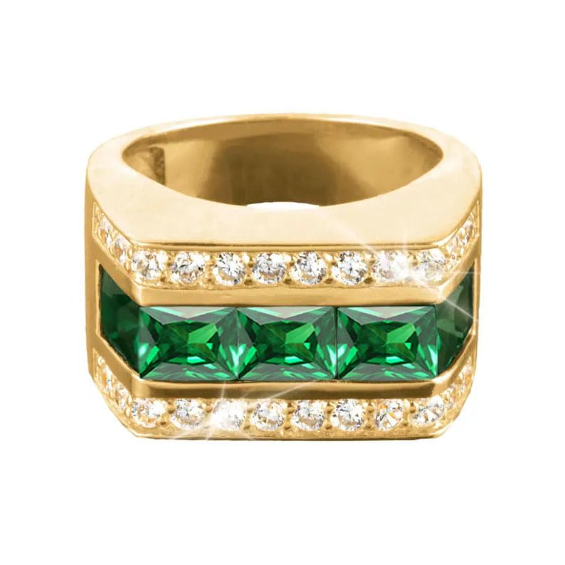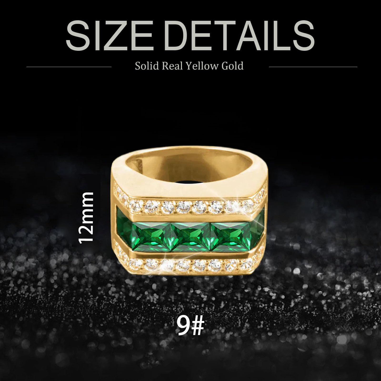 PYTALI Channel Emerald Gold Ring for Men 9K 10K 14K 18K Solid Yellow Gold Men's Ring Moissanite Engagement Band Ring for Men Boyfriend Husband Engagement Wedding Anniversary Size 4 to 16