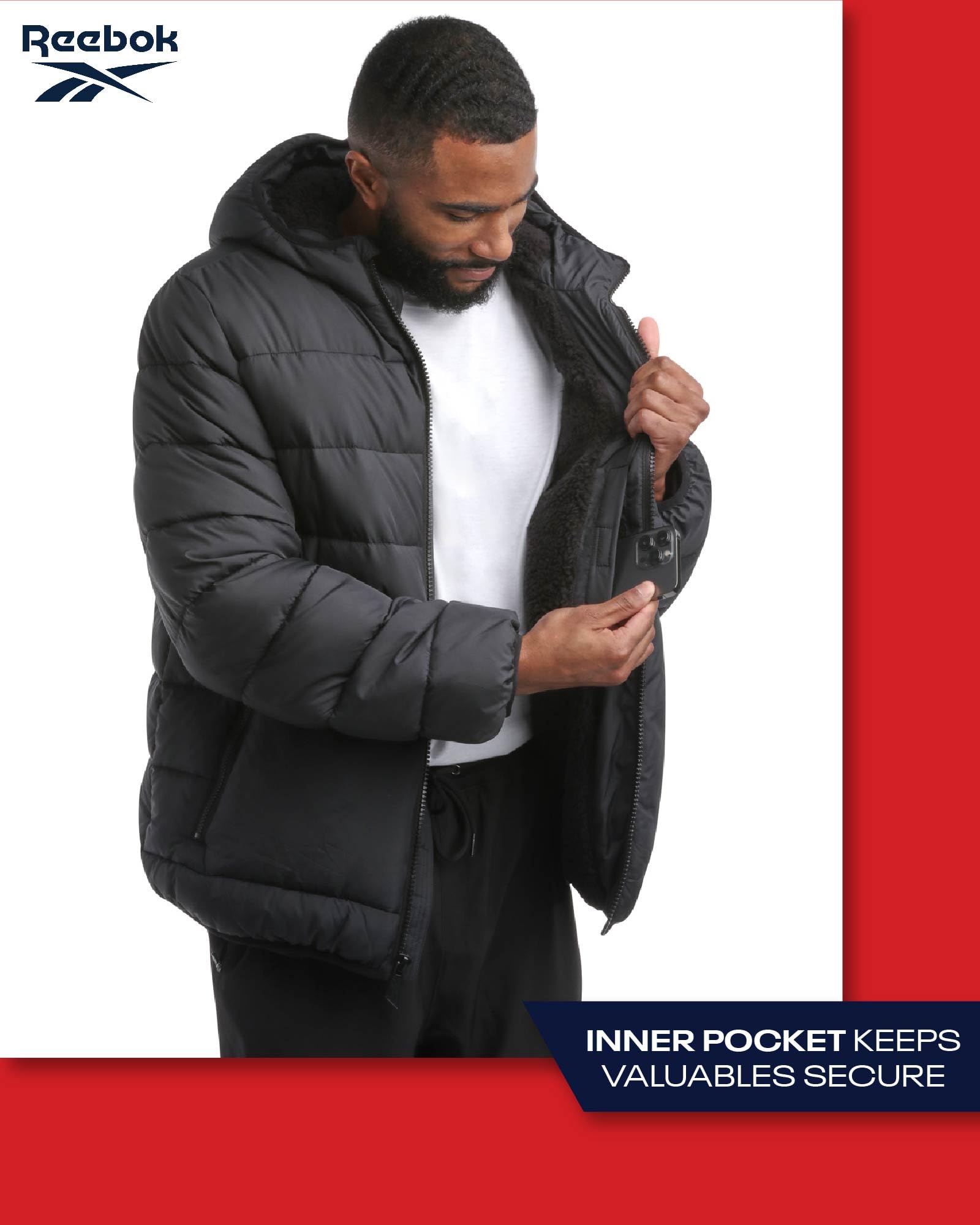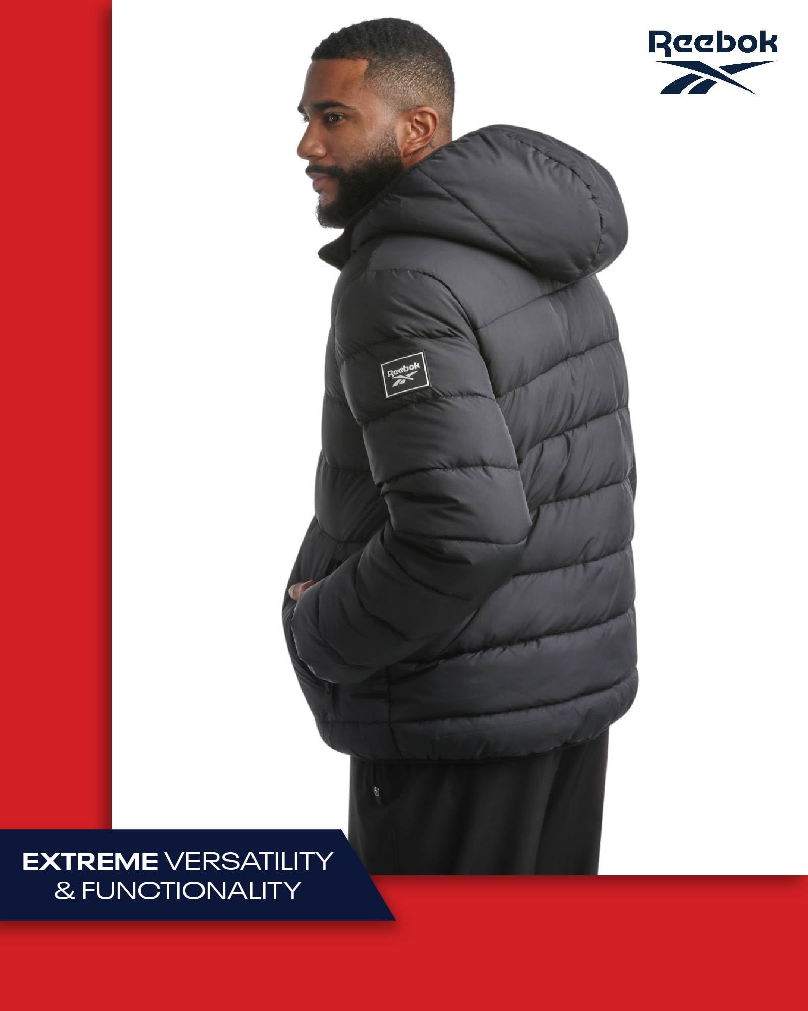 - OFFICIALLY LICENSED REEBOK: Heavyweight Quilted Puffer Parka for Men; Greatness doesn't come from standing still, Living an active life enables people to be their best selves