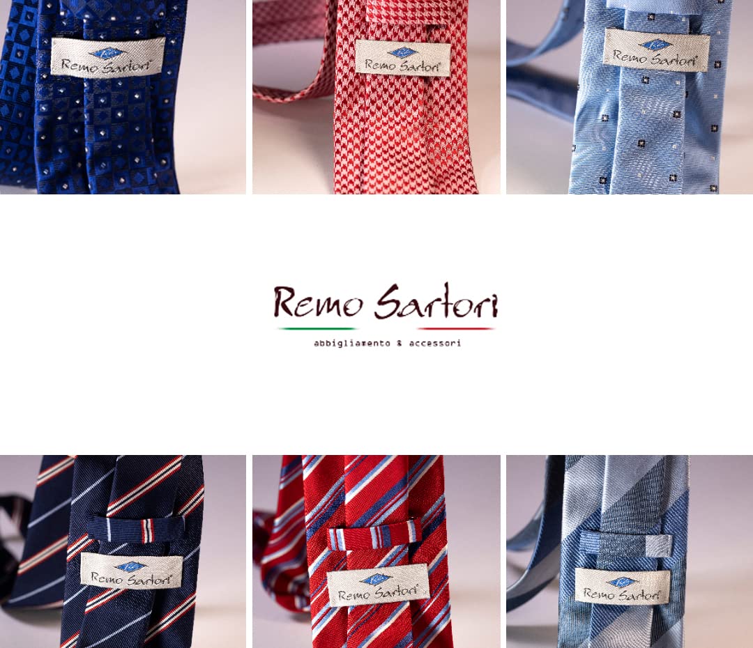 Details: Elegant Men's Polka Prince of Wales Dots Pattern Necktie, Made in Italy, 100% Jacquard Woven Silk. Width: 3.35 In (8.5 cm); Length: 58.27 In (148 cm). Remo Sartori Ties are entirely made in our Italian factory; our selected fabrics are woven in the best factories of Como. The ties are cut 45 degrees on the bias and machine made with Liba; finishing touches have been made by hand. The Necktie comes along with a carton bag.