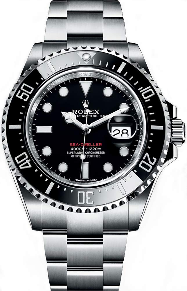 Black dial. Silver-tone stainless steel case with a silver-tone stainless steel rolex oyster band. Automatic movement. 1200 meters / 4000 feet water resistance. Uni-directional Rotating bezel. Oysterlock clasp. Case size 43 mm. Rolex 126600 Oyster Perpetual Sea-Dweller Watch.