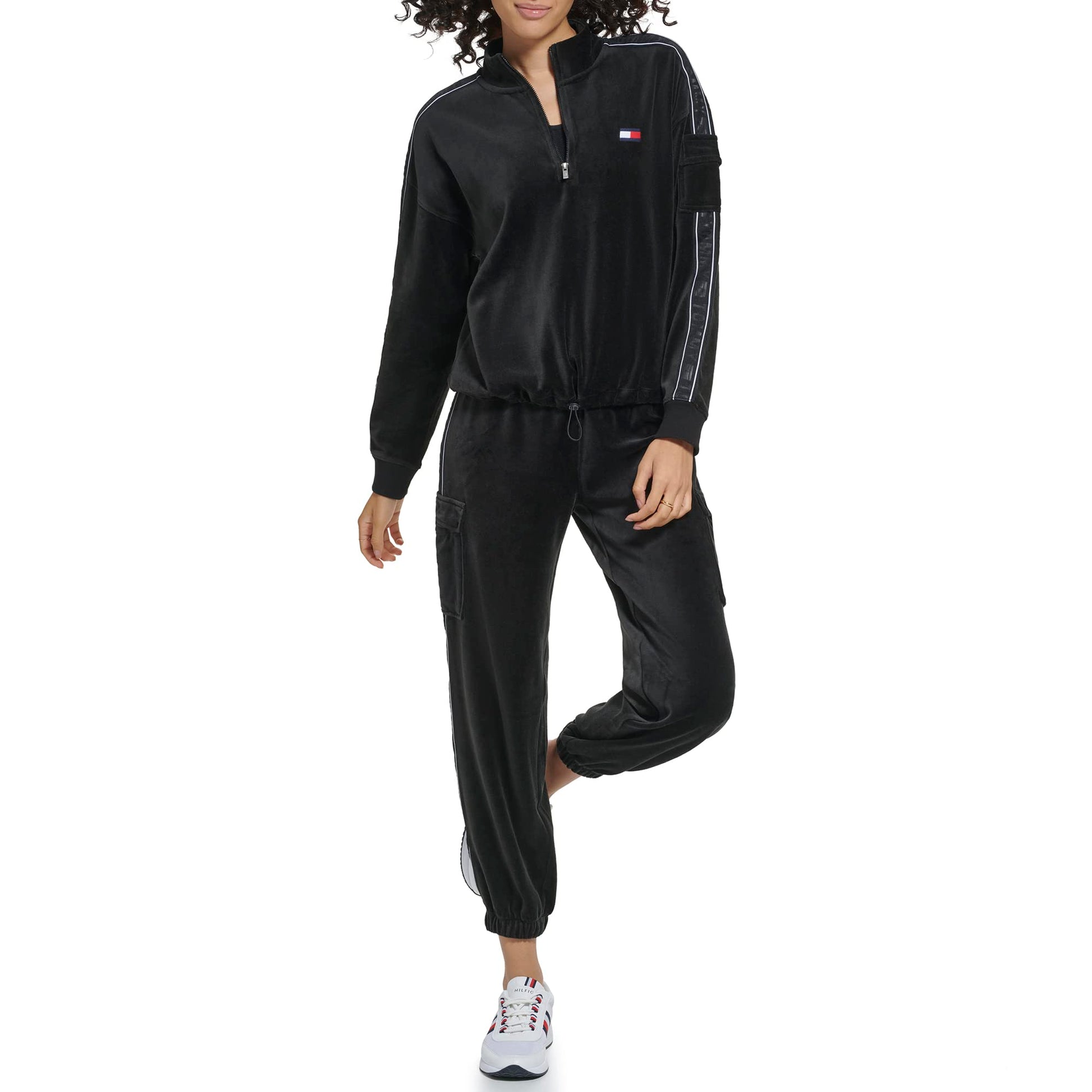 Tommy Hilfiger Velour Fabric Cargo Pockets Pullover Half Zip Ghost Debossed Logo Taping Womens