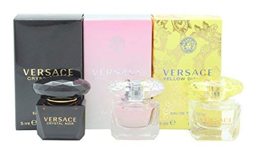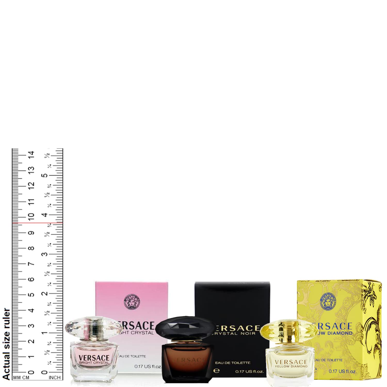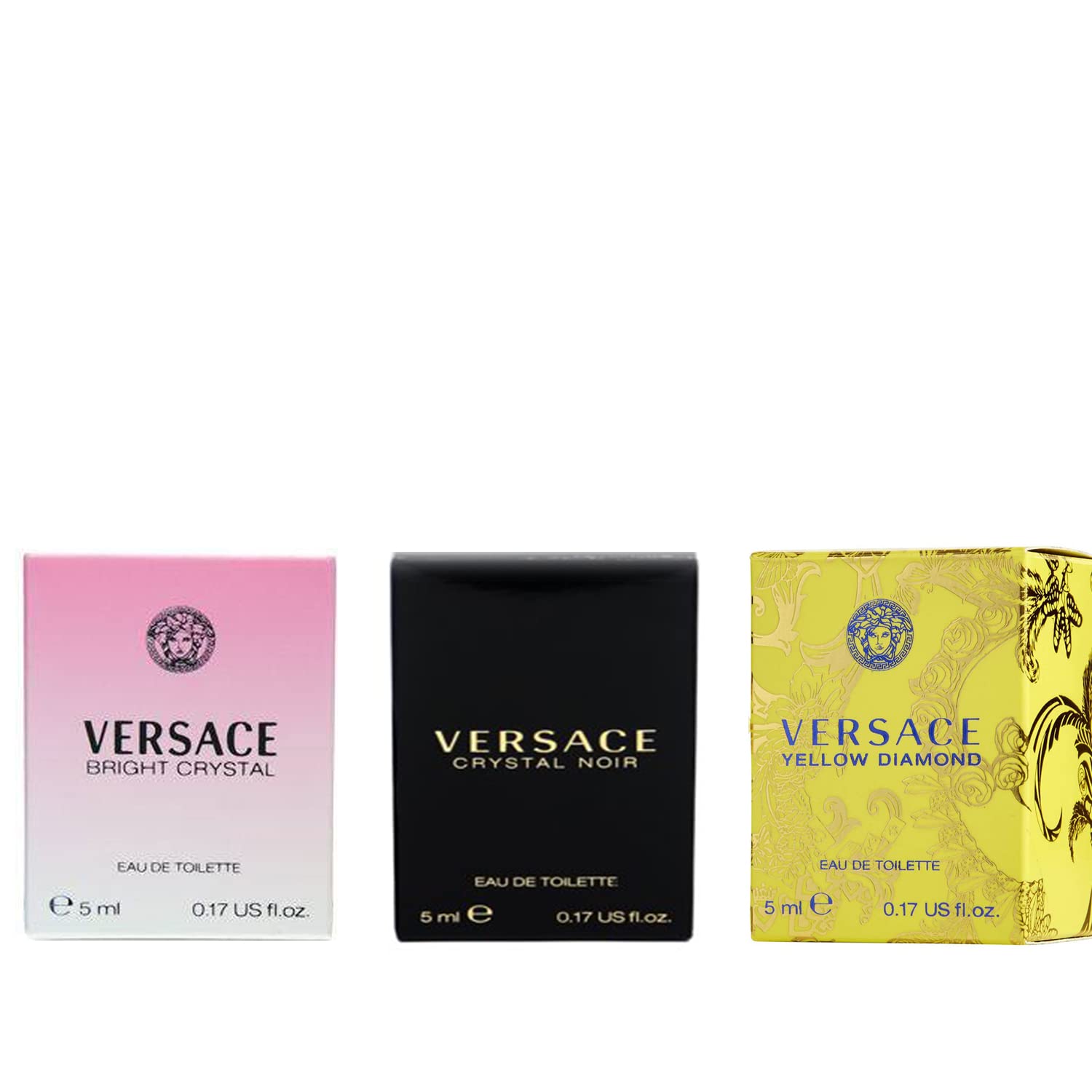 Details: versace variety by versace Gift Set 0.17oz Crystal Noir EDT Splash| 0.17oz Bright Crystal EDT Splash| 0.17oz Yellow Diamond EDT Splash : Launched by design house of Versace in the year 2006. This floral fragrance has a blend of guava, white lilacs, jasmine, lotus flowers, orchid, azaleas, vetiver, cedarwood, and musk.