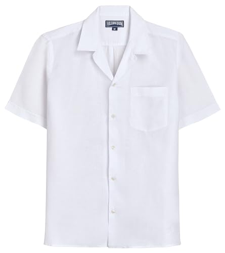 Vilebrequin Men Bowling Shirt Linen Solid, XL, White